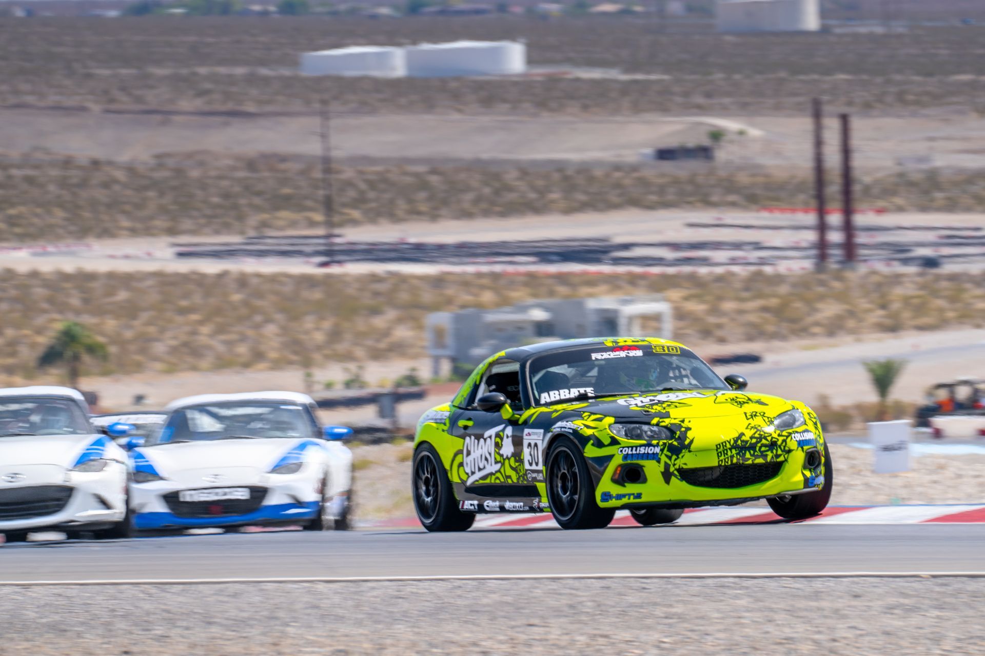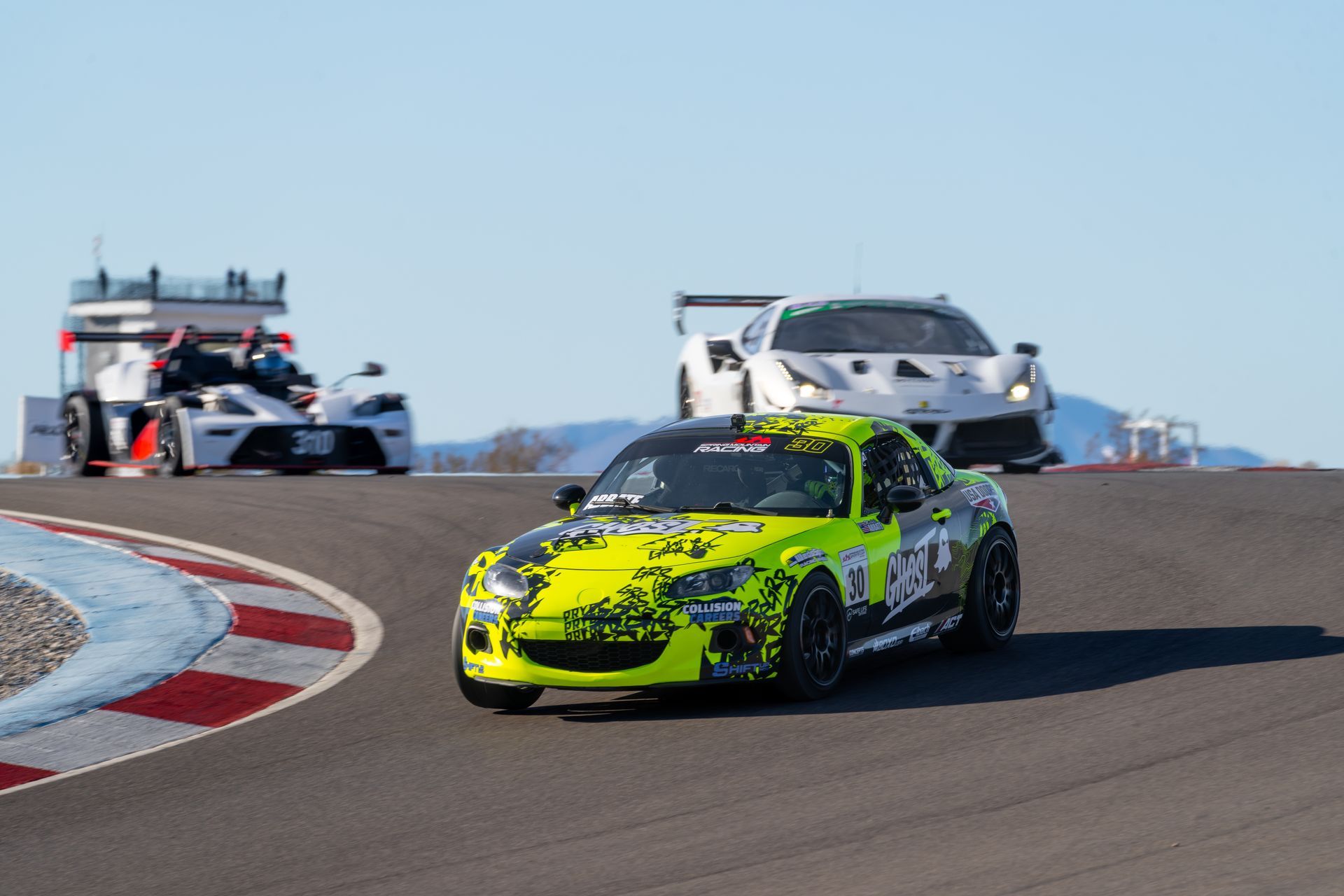 Michele wasted no time making her presence known. During practice, she shattered her personal best lap time — a hint of what was to come. That momentum carried straight into qualifying, where she set a new GTM class track record and secured P1 for Race 1. From the moment the green flag dropped, Abbate drove a clean, confident race in the GHOST Energy #30 GTM Miata, leading from start to finish and earning a hard-fought victory and valuable championship points.